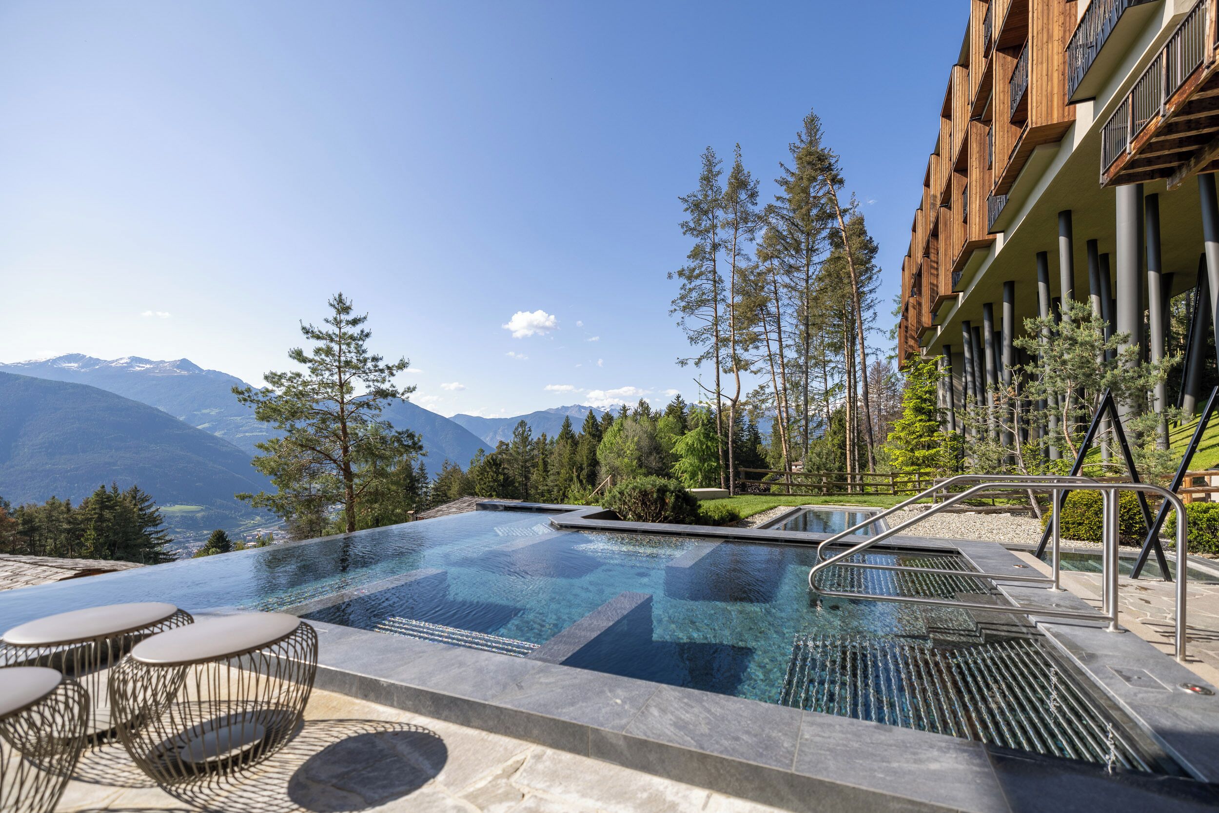 Mountain hotels wrapped in trees (alpine calm + forest edge)