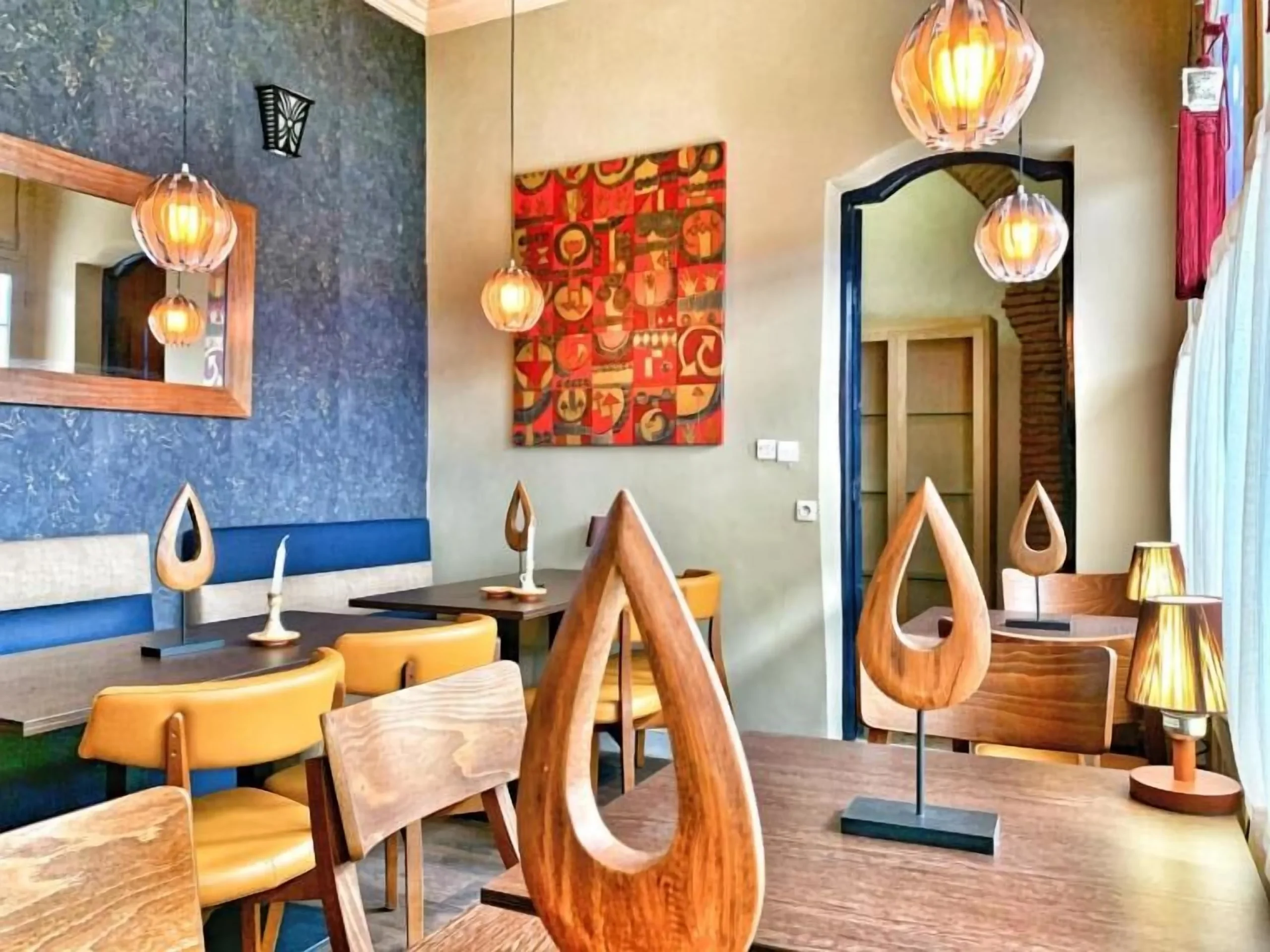 The architecture follows the traditional pattern — rooms arranged around a central space, carved wooden details, classic tilework on the walls. What makes it different is how the contemporary touches sit alongside the old ones without competing. The proportions stay true to the original building. The light still moves the same way it always has in houses built like this.